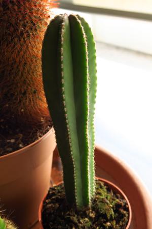 Aha, dus toch familie van nr 4. Hoe weet je overigens dat de Uebelmannia ge-ent is? Op het dubbele kaartje dat in de pot zit staat namelijk effectief de term zaailing , waardoor ik aannam dat het over het kleine bolletje ging. Als ik op de naam Trichocereus verder zoek, dan kom ik ook afbeeldingen tegen die erg veel lijken op nr 6. Zou dat ook een Trichocereus kunnen zijn? De vele naamvarianten was me al opgevallen, het blijft een interessante materie.