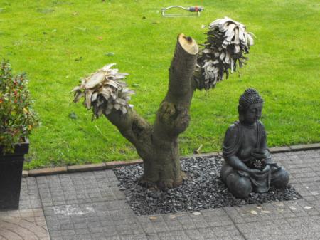 Nu maar hopen dat er uitlopers ontstaan bovenin de afgezaagde stammen, dat hoop ik wel natuurlijk?