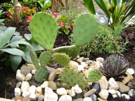 mooi onderhouden planten. De opuntia staat er ook mooi bij zal dit jaar nog wat schijfjes bijmaken. Ik denk wel dat de trachy's vooraan met jaren zal moeten verplanten want zullen toch wat groot worden. In volle grond zal maar weinig overleven van de echte exoten maar het blijft altijd het proberen waard. probeer eens met een Brahea of een washingtonia zijn toch wel een stuk sterker dan een Cycas of een jonge Phoenix.c. Veel succes verder met de mooie tuin.