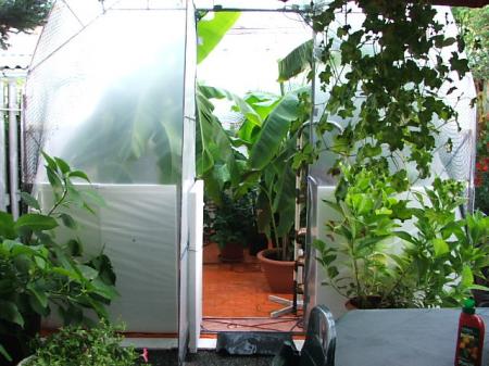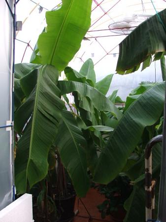 Hoi edward, de bananen die te groot worden doe ik gewoon weg en hou ik telkens een paar grote en kleine over. Wat ik niet heb, is ruimte om een kas permanent te laten staan, en daarom heb ik onlangs op 5 minuten afstand een volkstuintje gehuurt en daar gaat de kas volgend jaar naar