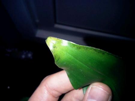 Van het blad ( en niet nat aanvoelde, zat dus in het blad, duidde op een virus