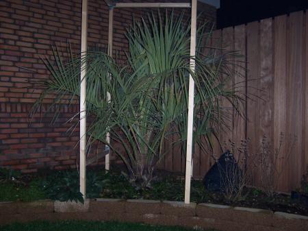 de eerste was net zo groot als op je eerste foto ik dacht dat ik hem goed had beschermt niet dus die nu in de volle grond staat is een stuk kleiner en die ga ik een afdakje geven en in pakken en als het goed mis is met de winter dan doe ik ook nog een lichtslang er om heen