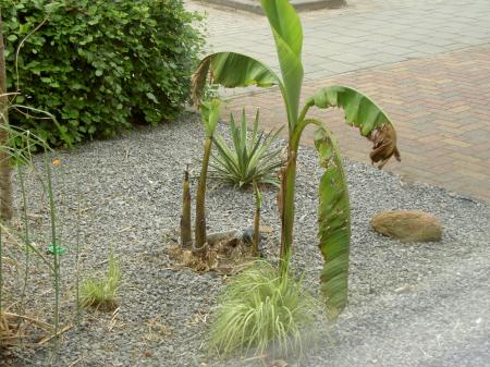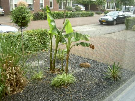 Dag Jacco Die musa's staan inderdaad prachtig(die palmen ernaast natuurlijk ook),die van mij zit nu ook al rond de 3m.Zonder bladschade in volle grond is onmogelijk,in de natuur is het niet anders,ik spreek eigenlijk maar van schade als een blad is afgeknakt door de storm,voorlopig dit jaar nog niet gebeurd. Af en toe foto's doorsturen,ben altijd benieuwd naar de groei van die planten in ons klimaat. Mvg Philip.