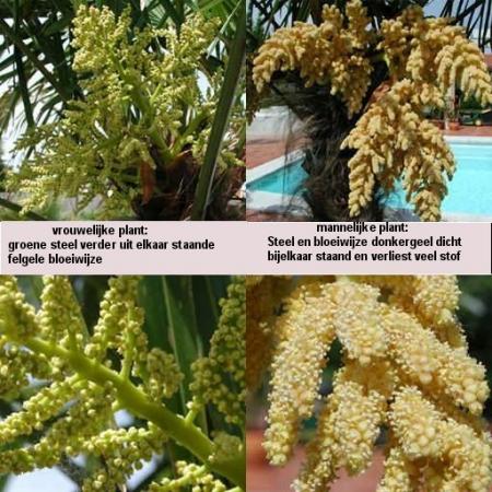 Heeft iemand een idee hoe je aan een trachycarpus (bloeiwijze) kan zien of je een mannelijke of een vrouwelijke plant hebt, aangezien dat deze plant tweehuizig is? Is daar uberhaupt het verschil tussen te zien of moet je gewoon mazzel hebben dat je een man en een vrouw hebt voor de zaadvorming? (een heel bos aanplanten is wat te gortig). Ben van plan (weer) een tweede uit te planten maar dan zou ik er graag eentje van het andere geslacht hebben..