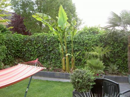 De grootste musa's zijn inmiddels alweer 3 meter hoog, al lopen ze wat achter op d vorige jaren