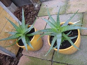 Maar, hoplijk staan de Aloe in een pot met afwateringsgaten. De grond lijkt me wat nat en de planten zouden nu langzaam de rust in mogen.