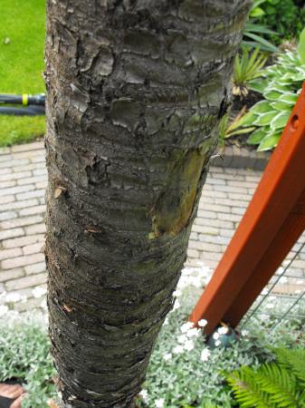 Plek op de stam, dit is wat zacht eronder, zo zijn er 3 a 4 van dit soort plekken.