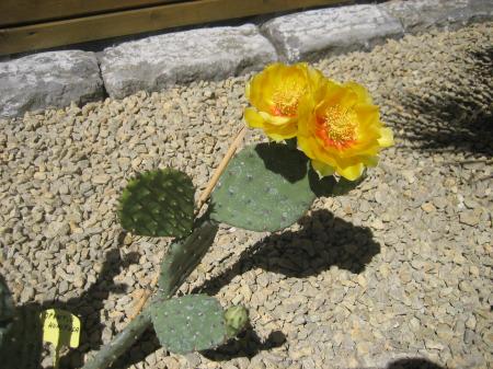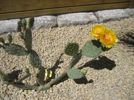 Hier een foto van mijn opuntia humifusa in bloei.gisteren nog totaal geen bloem en deze middag had ik opeens mijn eerste bloem wel leuk