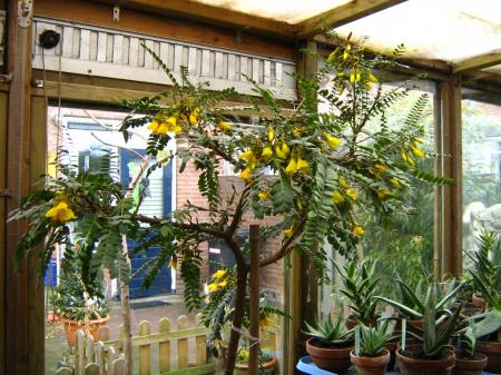 Bij mij is het volop lente in de kas nu eindelijk de Sophora