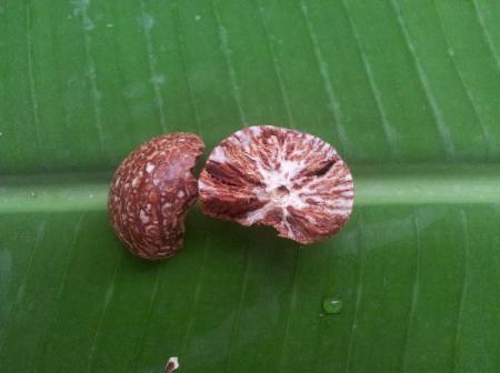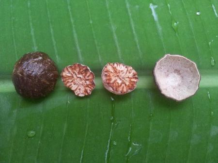 Ik vond hier op de markt(in Bangkok) twee soorten nootmuskaat. De eerste is Myristaca fragrans, en ruikt ook heel lekker. De tweede heeft geen geur als ik em doorsnijd. Iemand een idee welke soort het is ?