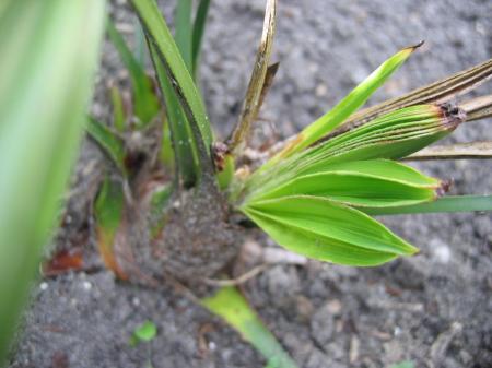 ik heb net het zelevde probleem bij mijn trachycarpus fortunei van 60 cm stam die 4 jaar in de volle grond staat , deze heeft nu nog maar 4 bladen door de winter schade en deze bladen gaan als volgt , blad 4 open gevouwd en geen steel , blad 3 3/4 opengevouwen en geen steel , blad 2 begint open te vouwen maar ook geen steel , blad 1 is nog maar een speertje van 7 cm , dit is toch niet normaal he of vergis ik me, vorig jaar had hij 12 nieuwe bladen aangemaakt en maar 5 cm stam aangemaakt , mijn grote trachy 130 cm stam is al aan zijn 5 de blad bezig.