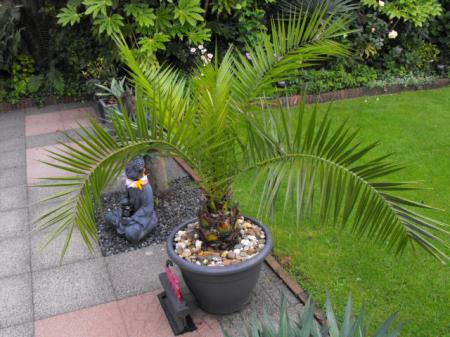 Kies voor een butia capitata die is veel harder en met bescherming kan ie groot worden in je tuin, is ook een verderpalm.