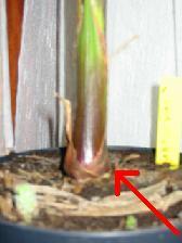 Na de wortels begint het stammetje met een soort knoop. de onderkant van de knoop is de plant diepte. zie foto's.