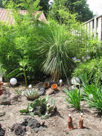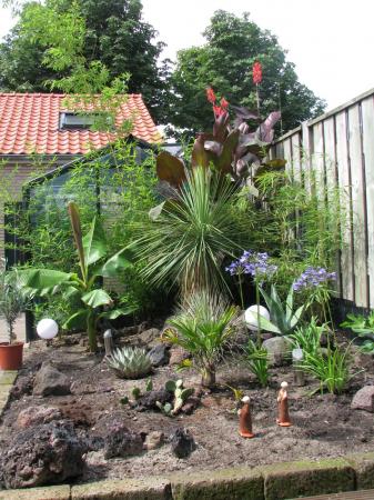 Dag, Altijd mooi zo een tochtje door de tuin. Mijn Agapanthus planten zijn ook goed door de winter gekomen in volle grond,ergens gelezen dat de bladverliezende (met de smalle kleinere bladeren) meer winterhard zijn tov de andere soorten; Hopelijk lukt het dit jaar om de Musa sikkimensis door de winter te krijgen,beschermen en een dosis geluk moeten volstaan. Mvg Philip.
