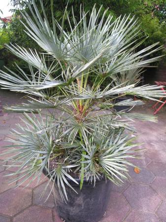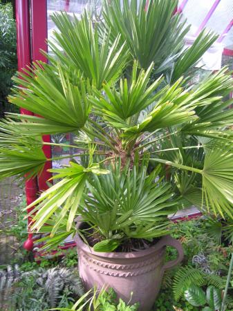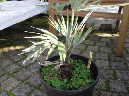 Ik ben in het gelukkige bezit van een koude kas voor de overwintering van de 'kostbaarste' exemplaren. Met name de 'Vulcano' en 'arborescens' staan tussen eind november en begin maart onder dak. Zo'n dakje tegen de regen is zeker effectief, dat heb ik de afgelopen winter wel ervaren met een grote Trithinax campestris. Die had deze keer zelfs geen bladschade van betekenis. De groei van deze soort is althans in de kuip zo traag, dat het nog lang zal duren, voordat het bladverlies en de speerrot van de voorlaatste winter zijn gecompenseerd. Deze soort maakt trouwens ook uitlopers. Maar zoals Dennis waarschijnlijk terecht opmerkt, ontwikkelen deze zich vooral in het jeugdstadium. Ze ziet dat ook bij Phoenix reclinata, die dan uiteindelijk een meerstammige palm vormt. Vooralsnog lijkt het vermogen van de princeps om middels een zijscheut te regeneren, een unieke eigenschap binnen dit genus.