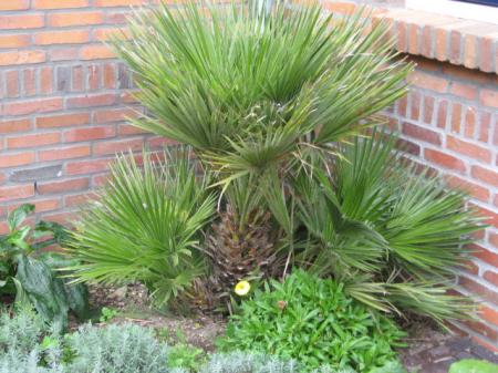 linearis. Vorig jaar werden 2 nieuwe topscheuten aangelegd, waarvan er dit jaar een uitgroeide en de andere degenereerde. Ook een scheut aan de stambasis legde het loodje. Typische clustervormende palmen zoals Chamaerops humulis, vormen talrijke scheuten aan de basis, maar die activiteit neemt vaak af als de plant ouder wordt en een flinke stam heeft ontwikkeld. Ik snoei de adventiefscheuten doorgaans weg, om de ontwikkeling van de hoofdstam te bevorderen. Ik bezit ook een flinke Trachycarpus met een kleintje aan de voet van de stam, maar dat kan evengoed een zaailing zijn van een vroege bestaansperiode.