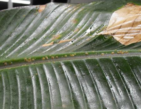 Een blad heb ik verwijderd, degene van de foto, zat ook een glans laagje op(soort lakachtig) en veel beestjes erop en eronder ook.