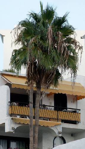 Bij een washingtonia robusta zitten toch van die vezels aan het blad of vergis ik me?