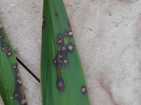 Yucca ziek (bruinwitte vlekken met zwarte spikkels
