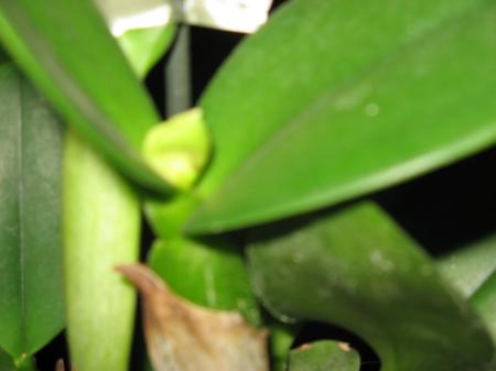 de foto is niet heel scherp maar hier zie je een spath bij een cattleay.hier komt dus de nieuwe bloemstengel uitwou het jullie is graag tonen
