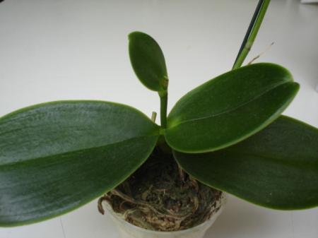 Mijn miniphalaenopsis had 3 bloemstengels Op één van de uitgebloeide stengels heeft zich een blaadje ontwikkelt.Normaal gezien verwachtte ik een keiki, maar het blad groeit en heeft geen enkel worteltje. Wat is dit?