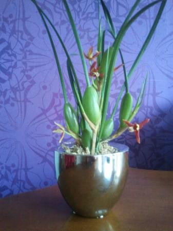 Deze heb ik pas, en schijnt heel kort te bloeien....hij heet maxillaria tenuifolia, en ruikt heerlijk naar cocos!