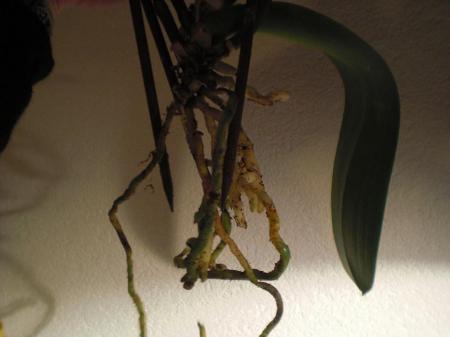 tip: als je een orchidee koop kijk je best ook eens naar de wortels. een pot vol met grijsgroene wortels is een gezonde plant. een plant met een paar wortels in een evengrote pot zal veel sneller wegrotten.
