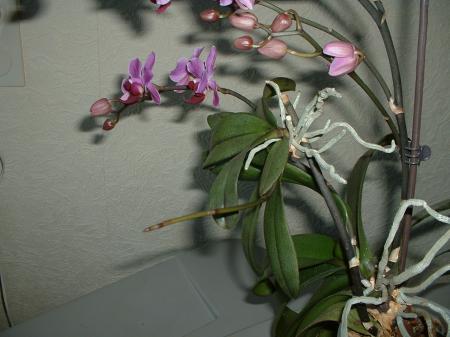 Greenconnection wat ben je snel. Deze raad had je me al eerder gegeven en mijn antwoord was dat ik dat zou doen als de wortels wat langer zouden zijn. Toen begon de moederplant met bloemstengels en durfde ik het niet. Wat moeilijk te zien is op de foto; het zijn 2 keiki,s dicht bij elkaar en daarom lijkt het groter dan het is. Nogmaals bedankt voor je goede raad en snelle reactie.