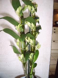 Een ander soort Dendrobium (x delicatum) houdt de bloemen in de woonkamer