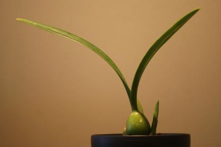 Ik me ook aan een encyclia gewaagd, die het voor alsnog goed doet! Zit een mooie scheut aan! Hij heet Edhitiana, maar kon er niks over vinden, dus het zal mij benieuwen wat voor bloem er aan komt.. (of iemand moet het weten?)