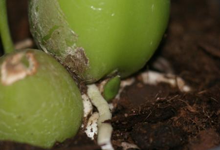 deze paphiopedilum tranlianum zou pas over een tijdje gaan bloeien, maar ziedaar, een knop! Nou weet ik niet precies hoe zo verder? moet ik hem lekker laten groeien, of zo snel mogelijk een stokje ernaast?