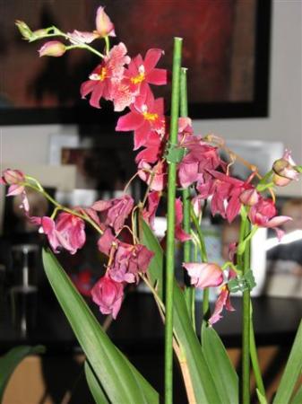 Ik ben verzot op orchideeën. Ik heb bijna allemaal Phalaenopsissen. Sinds moederdag (begin mei dus) heb ik een cambria gekregen.