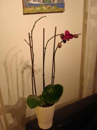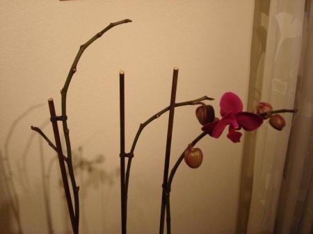 Ik heb nu nog 1 tak waar 1 bloem aanhangt (uitgekomen na debacle) en wat knoppen. En dus 2 kale takken....
