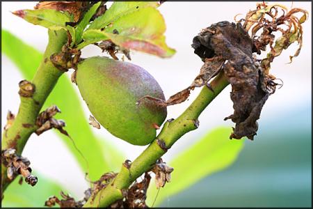 Zoals nog werd gemeld is het een gevolg van de krulziekteschimmel.