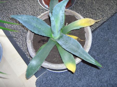 De bladen van onze aloe vera worden geel aan de uiteinden.