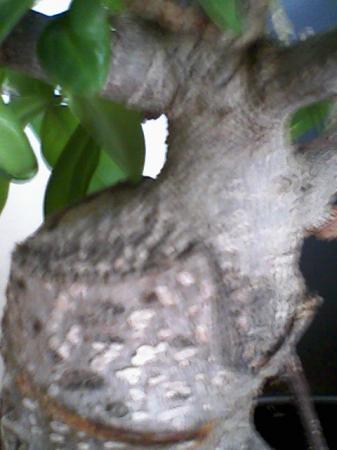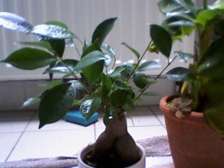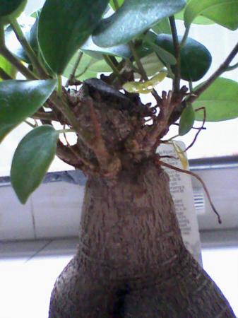 Mijn moeder heeft een andere Ginseng, grotere, waarvan ik niet zeker ben wat voor stam het is, maar de bovenkant die er op is geënt is van de Ficus panda.