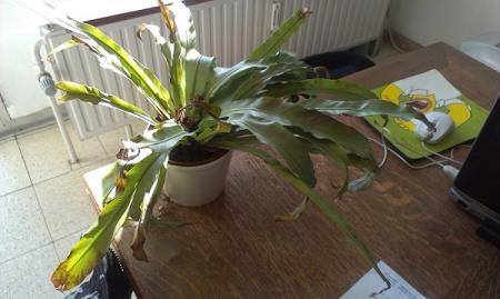 Het is Aspleniuminfo-icon nidus, nestvaren. De plant verdraagt redelijk veel licht. Laat de kluit opdrogen voor je weer water geeft. Een grotere pot(met afwateringsgaten) is wenselijk.