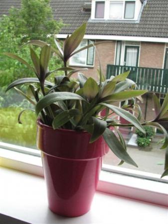 De eerste (in de roze pot) was toen ik hem kreeg een stuk paarser aan de onderkant van de bladeren. Dat zou ik wel weer graag willen maar heeft dat te maken met de verzorging of met de leeftijd van de plant?