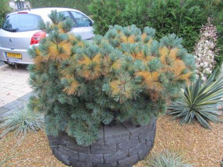 strobus? Deze soort en diverse cultivars van deze soort krijgen in de herfst vaak last van bruin wordende naalden. Het enige wat je kunt doen is de bruine naalden 'plukken'.