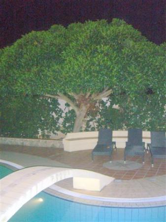Wel vreemd dat je er niet onder mag zitten, terwijl hij wel naast het zwembadterras staat.
