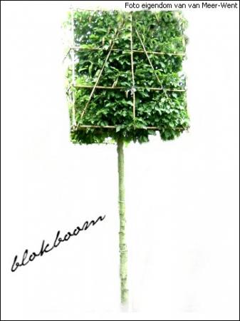 Een blokhaag vormt men van leibomen, die in een blokvorm gesnoeid worden.
