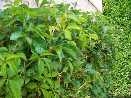 Heb lang een wilde wingerd staan gehad moest hem 2x per jaar insnoeien en zat stevig aan de muur met zuigmapjes