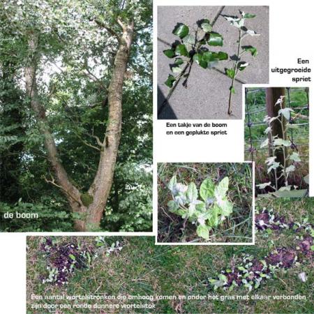 De wortelstronken komen nu zelfs op even afstand van ca. 15 meter vanaf de boom de grond uit.