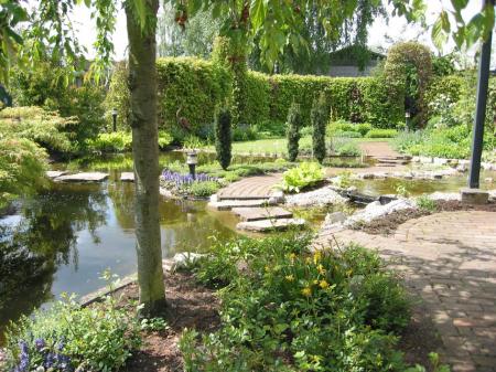 G. Bijvank, dat is een prachtige vijver, maar heeft u niet ieder jaar last van bloesem in de vijver. Ik heb hier ook een sierkers naast d evijver staan, via de beekloop en bij enige wind, kan ik met het schepnet aan de gang. Heb geen skimmer, maar denk soms dat dat wel eens erg handig zou kunnen zijn.