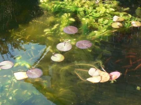 In onze dit jaar aangelegde vijver, ca 2,50 x 3 meter en max 1 meter diep, zit o.a. veel glanzend fonteinkruid.