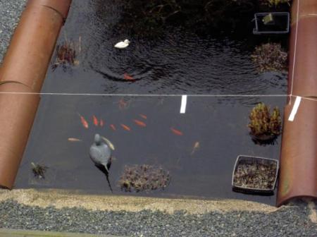 Maar tot nu toe, onder de huidige omstandigheden (!), hebben de vissen het nog niet moeilijk. De temperatuur van het water is met 7 graden celsius behoorlijk constant en de vissen varen daar wel bij, alsmede een aantal planten-soorten. Ik weet dat het al lang erg zacht is, maar het is in ons klimaat volkomen normaal dat het deze week 8 graden boven nul is en volgende week 5 graden vriest. Pas dan krijgen de vissen het moeilijk. Nu niet. Ik weet ook niet wat er komen gaat tussen nu en begin april, maar tot nu toe hebben de vissen het makkelijk en dat kun je zien ook.