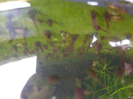 Een glimp uit de vijver,kijk maar eens naar al die schatjes(foto weerkaats wel een beetje,niet gemakkelijk een foto nemen in het water)