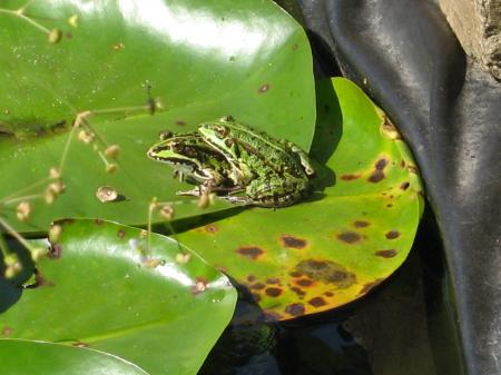 overals waar men in de tuin loopt , komt men de kikkers tegen of lopen ze gewoon voor je voeten....het krioelt ook volop van de kikkervisjes....