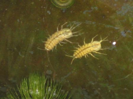 Dit zijn geen larven. Het zijn gewoon waterpissebedden. Die zijn erg nuttig