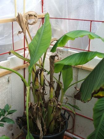Mijn lotusbanaan staat nu voor het 2e jaar in mijn verwarmde kas te overwinteren, maar hij ziet er maar slecht uit, en word het erger